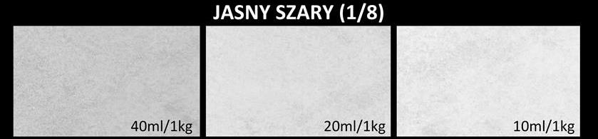 Aby ustalić faktyczny odcień zaleca się wykonanie próbki z 0,5 lub 1kg mikrocementu barwiąc go w/g schematu jak niżej