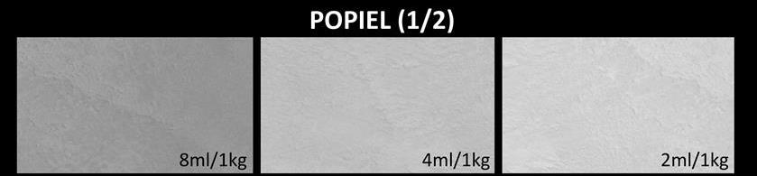 Orientacyjne odcienie mikrocementu FAST w zależności od dawki pigmentu
