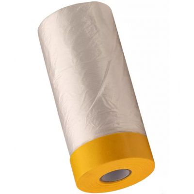 Produkt z kategorii Narzędzia . Profesjonalna folia z precyzyjną żółtą taśmą do łatwego i szybkiego zabezpieczenia dużych oraz nietypowych powierzchni podczas prac remontowych.